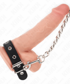 KINK – LEATHER PENIS RING 21.5 X 2 CM WITH 60 CM METAL CHAIN AND LEATHER STRAP